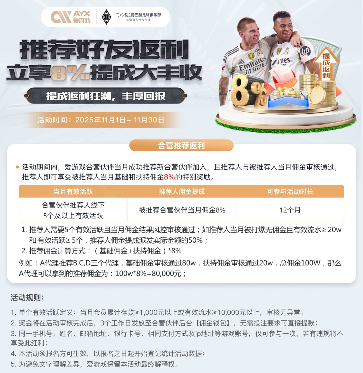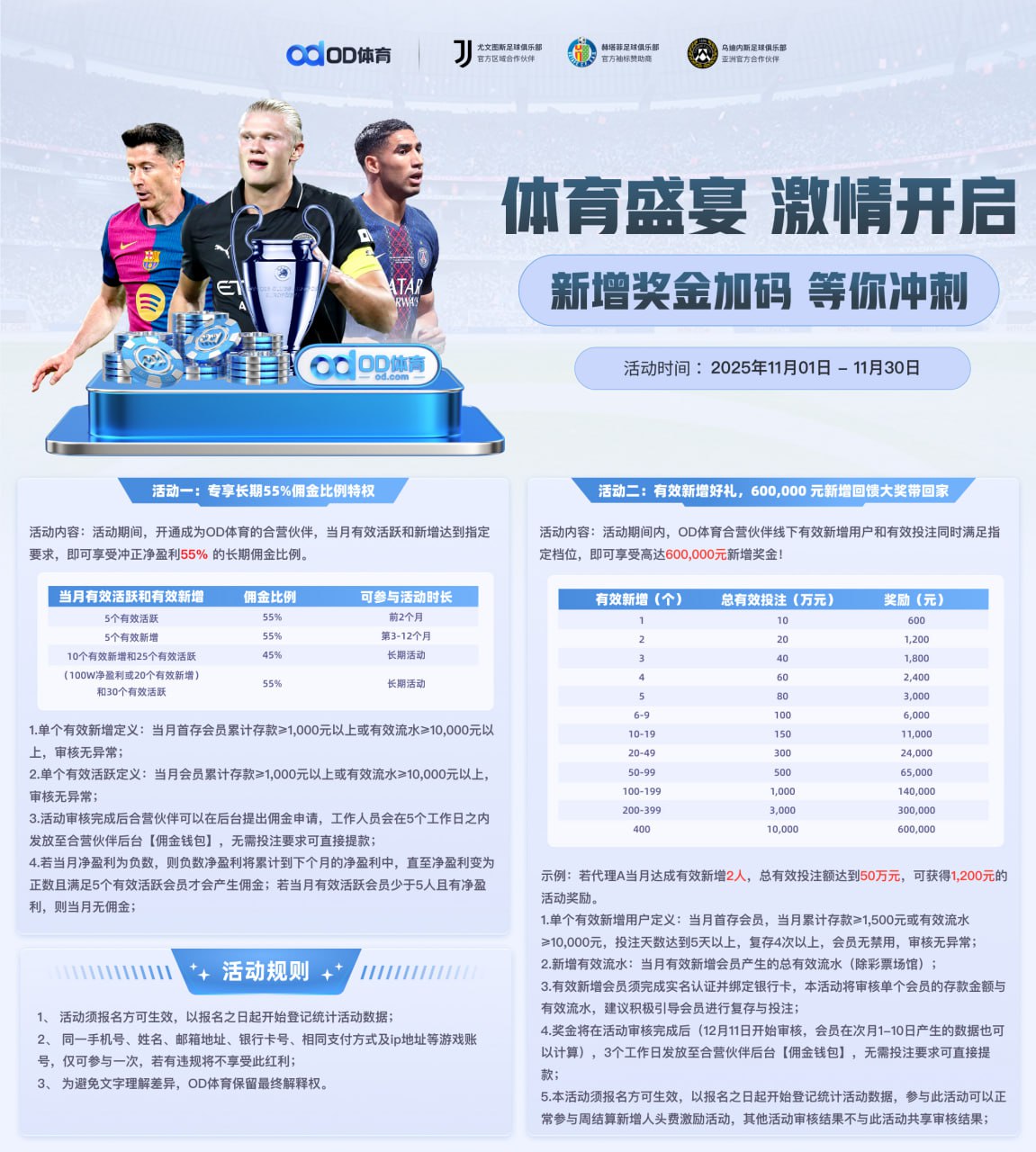 客损分红55%丨阶梯式奖励+优质会员奖励,5个有效新增保底2998元丨介绍代理朋友返净输赢最高4%;首存+周复存+晋级彩金活动大力助推